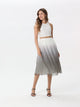 تنورة بكسرات من تول متدرجة الألوان تمثل قطعة فريدة وجميلة. تصميم الكسرات مع الألوان المتدرجة يضفي على التنورة لمسة رومانسية وجمالية.