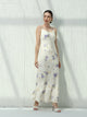 قماش الفستان مشجر بنقوش جميلة، مما يضيف حيوية وعمقًا للتصميم. تتضمن الرسومات ألوانًا زاهية وتنسيقًا متناسقًا يعكس ذوقًا رفيعًا. يبرز الفستان الخصر بشكل أنيق، وتفاصيل الكسرات من الخصر تضيف بعدًا إضافيًا إلى التصميم.