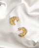 أقراط أذن ذهبية بتصميم حلزوني تتميز بأناقتها العصرية، حيث تتداخل الخطوط بشكل جميل لتشكل حلزونات جذابة. تعكس اللمعان الذهبي، مما يضيف لمسة من الفخامة لأي إطلالة.