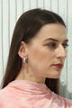 Dangling earrings encrusted with rhinestones and pearls feature an elegant design that combines sparkle and femininity. They hang attractively, with the rhinestones adding a striking shine while the pearls bring a touch of elegance and delicacy.