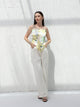 The fabric is made from soft silk, adding a touch of luxury and smoothness against the skin. The top is adorned with a variety of prints and vibrant colors, which may include geometric shapes, floral patterns, or artistic designs, making each piece unique and expressive of the wearer’s personality.