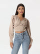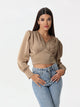 Silk blouse with ruffled shoulder and V neck