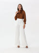 This silk blouse with ruffled shoulders is an elegant and feminine piece. Silk gives the blouse a soft, shiny look, while ruffles on the shoulder add a touch of elegance and appeal.