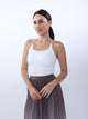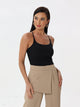 This slim-fit T-shirt features inverted straps in a unique and modern design. The inverted suspenders come with an unconventional detail, as they cross the back in an inverted manner, adding a touch of distinction and appeal.