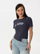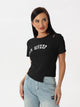 This T-shirt with a diagonal print and short sleeves is a stylish and modern piece. This T-shirt features a diagonal print that adds an artistic and innovative touch, making it stand out among casual clothing pieces.