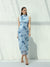 Printed dress with scalloped waist and high neck