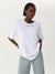 A free size T-shirt with an embroidered collar that adds a sophisticated and distinctive touch to your look. Embroidery details add an artistic and stylish element to the t-shirt, making it a unique and eye-catching piece. You can easily coordinate this T-shirt with various looks, with casual jeans.