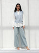 A jacket adorned with elegant designs made from ribbons. The soft wool fabric ensures high comfort and warmth, making it perfect for wearing in cold weather. This jacket can be worn over a T-shirt or blouse and can be paired with jeans or tailored pants for a stylish casual look.