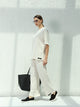 Pants: Comfortable with an elastic waistband, making it suitable for various body types and adding a touch of elegance.