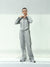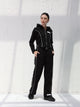 A women’s athletic set with a hood consists of a jacket and comfortable pants. The jacket features a hood that provides extra protection, making it ideal for outdoor activities. The fabric is lightweight and breathable, ensuring comfort while moving. The pants come in a comfortable design that allows for freedom of movement, making the set an excellent choice for exercising or everyday wear.
