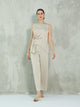 Silk Set: A silk set is an elegant and luxurious option that combines comfort and style. It features a blouse design that includes a unique touch with a gathered detail at the hem, adding a modern and attractive look. This gathering adds movement to the blouse and beautifully highlights the design details.