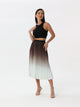 Side-pleated silk skirt with thigh slit