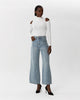 Slim fit wide leg jeans are a distinctive piece that combines a narrow fit around the waist with wide legs below the knees. This design gives a modern and fashionable look.