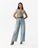 A high-waisted, wide-leg formal pant that is elegant and suitable for formal occasions and work. The high waist enhances the feminine silhouette, giving a sophisticated appearance, while the design is comfortable and soft.