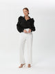 Enjoy unique elegance with this organza blouse featuring off-the-shoulder ruffles. This design reflects a romantic and feminine elegance, making it a great choice for special occasions and elegant looks.