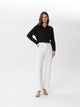 This button-down V-neck dress shirt is an elegant piece suitable for formal looks. The V-neck design enhances the femininity of the shirt, while the buttons add a touch of uniqueness and elegance.