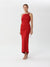 Fitted silk dress with a long slit and ties at the back. This dress features a sleek and attractive design that enhances your beauty. The silk adds a touch of luxury with its shine and softness, while the long slit and back ties provide unique aesthetic elements. The dress is slim, sleeveless, long, and has a flared hem, highlighting your figure with grace.