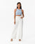 White high-waisted jeans with stitching at the waist and wide hems, perfect for any outfit.