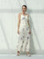 The dress features colorful floral patterns beautifully scattered on the white fabric, creating an attractive contrast that reflects the spirit of nature and vitality. The bright colors of the flowers add a touch of joy and liveliness.